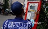 REPUBLIKA.CO.ID, JAKARTA -- Petugas mengoprasikan mesin parkir elektronik di Jalan Pintu Air, Jakarta, Rabu (22/3).