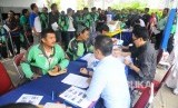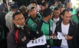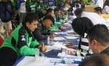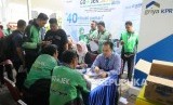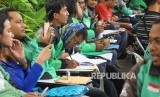 Sejumlah pengemudi Go-Jek mendaftar Kredit pemilikan rumah (KPR) subsidi di Bank BTN, Jakarta, Kamis (30/3). (FOTO : Republika/Agung Supriyanto)