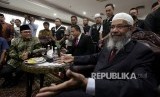 Ketua MPR Zulkifli Hasan (kiri) menerima kedatangan Cendekiawan Muslim asal India Zakir Naik (kanan) di kantornya, Kompleks Parlemen, Jakarta, Jumat (31/3). (FOTO : Republika/Rakhmawaty La'lang)