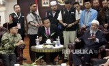 Ketua MPR Zulkifli Hasan (kiri) menerima kedatangan Cendekiawan Muslim asal India Zakir Naik (kanan0 di kantornya, Kompleks Parlemen, Jakarta, Jumat (31/3). (FOTO : Republika/Rakhmawaty La'lang)
