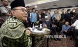 Cendekiawan asal India Zakir Naik (kanan) bersama Ketua MPR Zulkifli Hasan (kiri) menjawab pertanyaan wartawan bersama di Kompleks Parlemen, Jakarta, Jumat (31/3). (FOTO : Republika/Rakhmawaty La'lang)