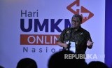 Gubernur Jawa Barat Ahmad Heryawan memberi sambutan saat acara program gerakan meng-online-kan 100.000 UMKM di Pasar Ciroyom, Kota Bandung, Jumat (31/3). (FOTO : Mahmud Muhyidin)