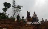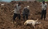 REPUBLIKA.CO.ID, PONOROGO -- Anggota Polisi Satwa unit K-9 dari Mabes Polri membantu proses pencarian korban longsor yang terjadi di Desa Banaran, Kecamatan Pulung, Kabupaten Ponorogo, Jawa Timur, Kamis (6/4).