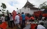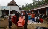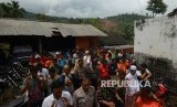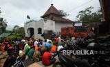 Sejumlah warga bersama relawan bersiap untuk melaksanakan shalat Jumat di Masjid Desa Banaran, Kecamatan Pulung, Kabupaten Ponorogo, Jawa Timur, Jumat (7/4). (FOTO : Republika/Raisan Al Farisi)