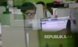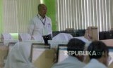 Pengawas memantau Ujian Nasional Berbasis Komputer (UNBK) di MAN 4 Jakarta, Selasa (11/4). (FOTO : Republika/ Yasin Habibi)