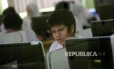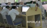 Siswa-siswi mengikuti Ujian Nasional Berbasis Komputer (UNBK) di MAN 4 Jakarta, Selasa (11/4). (FOTO : Republika/ Yasin Habibi)