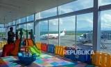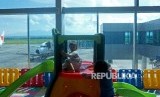 Anak-anak bermain di area bermain anak Bandara Internasional Lombok, NTB, Selasa (11/4). (FOTO : Republika/Prayogi)