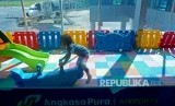 REPUBLIKA.CO.ID, LOMBOK -- Anak-anak bermain di area bermain anak Bandara Internasional Lombok, NTB, Selasa (11/4).