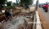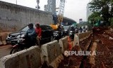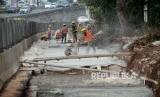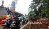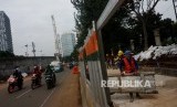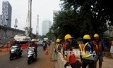REPUBLIKA.CO.ID, JAKARTA -- Pekerja mengerjakan proyek pelebaran jalan di kawasan perempatan Pancoran, Jakarta, Rabu (12/4).