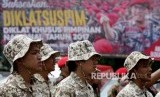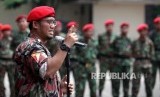 REPUBLIKA.CO.ID, JAKARTA -- Ketua Umum Pimpinan Pusat Pemuda Muhammadiyah Dahnil Anzar Simanjuntak memimpin apel pembukaan Diklatsuspim Komando Kesiapsiagaan Angkatan Muda Muhammadiyah (Kokam) Pemuda Muhammadiyah di Gedung Dakwah Muhammadiyah, Jakarta, Jumat (14/4).
