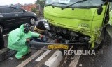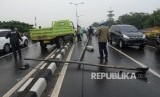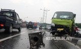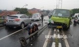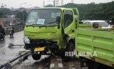 REPUBLIKA.CO.ID, JAKARTA -- Sebuah truk dengan nopol B 9505 SYV menabrak pembatas dan tiang listrik di jalan Jenderal Basuki Rachmat, Jakarta Timur, Selasa (18/4).