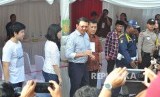 REPUBLIKA.CO.ID, JAKARTA -- Gubernur DKI Jakarta Basuki Tjahja Purnama ditemani istri dan anaknya saat akan menggunakan hak suaranya di TPS 54 Pantai Mutiara, Penjaringan, Jakarta Utara, Rabu (19/4).