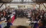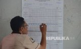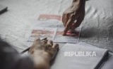 Petugas KPPS menunjukan melakukan penghitungan surat suara di Tempat Pemungutan Suara (TPS) 32, Cililitan, Jakarta Timur, Rabu (19/4) (FOTO : Republika/Raisan Al Farisi)