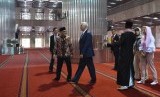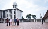 didampingi istri Karen Pence dan putrinya Charlotte Pence mengunjungi Masjid Istiqlal di Jakarta, Kamis (20/4).