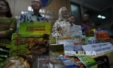 Seorang petugas memeriksa pangan, kosmetik, jamu dan obat tanpa ijin edar saat gelar ekspos di Kantor Badan Pengawasan Obat dan Makanan Kota Bandung, Jalan Pasteur, Jumat (21/4). (FOTO : Mahmud Muhyidin)