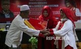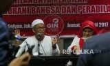 REPUBLIKA.CO.ID, JAKARTA -- Ketua PP GIN (Gerakan Ibu Negeri) Neno Warisman (kanan) dan Sekjen GIN Nungky (tengah) secara simbolis menyerahkan donasi kepada dari Buni Yani yang mengunggah video pidato Ahok, sebagai bentuk simbolis dukungan kepada Bun Yani, usai acara konferensi pers di Jakarta, Jumat (28/4).
