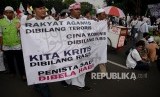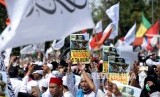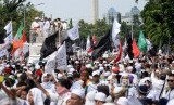 REPUBLIKA.CO.ID, JAKARTA -- Massa yang tergabung dalam Gerakan Nasional Pengawal Fatwa MUI (GNPF MUI) melakukan aksi di Jalan Medan Merdeka Utara , Jakarta, Jumat (5/5).