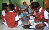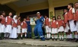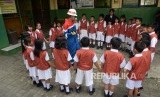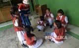 REPUBLIKA.CO.ID, JAKARTA -- Siswa mengikuti proses belajar mengajar oleh relawan pekerja Pertamina di SDN Tanjung Priok 2, Jakarta Utara, Senin (8/5).