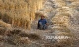 Peyandang difable Louy Al-Najar harus 'ngesot' di saat memanen gandum di Khan Younis Jalur Gaza selatan Ibraheem (FOTO : Ibraheem Abu Mustafa/Reuters)