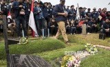 REPUBLIKA.CO.ID, JAKARTA -- Puluhan mahasiswa Univesitas Trisakti berziarah ke makam 4 mahasiswa korban Tragedi Trisakti di TPU Tanah Kusir Jakarta, Jumat (12/5). Kematian keempat mahasiswa ini pemicu kemarahan rakyat dan eskalasi gerakan reformasi 1998.