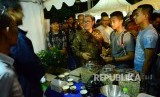 Gubernur Jawa Barat Ahmad Heryawan meninjau stand kopi pada acara "Ngopi Saraosna" di Halaman Gedung Sate, Kota Bandung, Sabtu (14/5). (FOTO : Republika/Edi Yusuf)