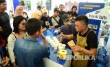 Pengunjung antre di salah satu stand kopi pada acara "Ngopi Saraosna" di Halaman Gedung Sate, Kota Bandung, Sabtu (14/5). (FOTO : Republika/Edi Yusuf)