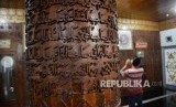 Ukiran huruf arab terdapat di tiang Masjid Al Munada Darussalam atau yang terkenal dengan sebutan Masjid Perahu di Jl Casablanca, Menteng Dalam, Jakarta Selatan, Senin (15/5). (FOTO : Republika/ Yasin Habibi)