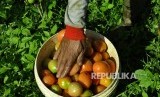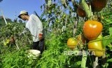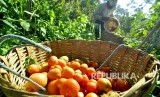 REPUBLIKA.CO.ID, BANDUNG -- Petani memanen buah tomat di lahan pertaniannya di Kampung Pasir Pogor, Desa Sukarsaluyu, Kecamatan Cimenyan, Kabupaten Bandung, Selasa (16/5).