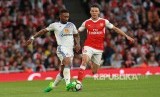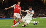 Pemain Arsenal Alexis Sanchez dan pemain Sunserland Bryan Oviedo berebut pada Premier League di Emirates stadium, Rabu (17/5) dini hari (FOTO : Sean Dempsey/EPA)