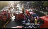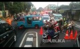 Petugas mengatur kemacetan arus lalu lintas akibat kebakaran yang melanda Pusat Perbelanjaan Ramayana, Jalan Raya Ragunan, Pasar Minggu, Jakarta Selatan, Kamis (18/5) pagi (FOTO : Republika/Yogi Ardhi)