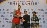 Ketua Komite Olahraga Indonesia Erick Tohir (kedua kanan) memberikan cindera mata kepada Pebasket penyerang tengah dari club OKC Thunder Enes Kanter (kiri) saat acara meet and greet di Britama Arena, Jakarta, Kamis (18/5).  (FOTO : Republika/Raisan Al Farisi)