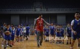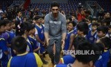 Pebasket penyerang tengah dari club OKC Thunder Enes Kanter memberikan materi kepada peserta coaching clinic saat acara meet and greet di Britama Arena, Jakarta, Kamis (18/5). (FOTO : Republika/Raisan Al Farisi)