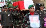 Prajurit TNI mengusung peti jenazah Kapten TNI Armada Pertahanan Udara (ARH) Heru Bayu saat upacara pemakaman di Makam Pahlawan Lolong, Padang, Sumatra Barat, Kamis (18/5). Kapten TNI Heru Bayu merupakan satu dari empat prajurit TNI AD yang tewas dalam insiden kecelakaan saat latihan tempur Pasukan Pemukul Reaksi Cepat (PPRC) di Tanjung Datuk, Natuna, Kepulauan Riau pada Rabu (17/5). (FOTO : Muhammad Arif Pribadi/Antara)