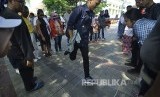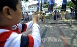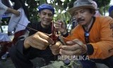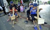 REPUBLIKA.CO.ID, BANDUNG -- Sejumlah anak bermain roda yang berbahan dasar limbah kayu saat gelar kaulinan budak di Jalan Soekarno, Kota Bandung, Sabtu (20/5).