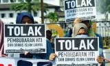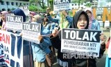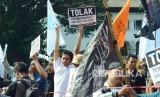 REPUBLIKA.CO.ID, BANDUNG -- Puluhan massa dari Aliansi Pemuda dan Mahasiswa Islam menggelar aksi,di depan Gedung Sate, Kota Bandung, Senin (22/5).