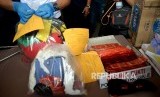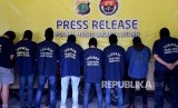 REPUBLIKA.CO.ID, JAKARTA -- Petugas kepolisian menunjukan barang bukti berserta tersangka hasil pengerebekan dugaan prostitusi gay bertajuk "The Wild One" saat rilis di Polres Jakartra Utara, Senin (22/5).