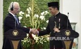 REPUBLIKA.CO.ID, BOGOR -- Presiden Joko Widodo menerima kunjungan kenegaraan Raja Swedia Carl XVI Gustaf di Istana Kepresidenan Bogor, Jawa Barat, Senin (22/5). Kunjungan kenegaraan ke Indonesia ini merupakan kunjungan pertama kali yang dilakukan kepala negara sepanjang hubungan kedua negara.