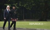 Presiden Joko Widodo (kanan) berjalan bersama Raja Swedia Carl XVI Gustaf (kiri) di halaman belakang Istana Bogor, Jawa Barat, Senin (22/5). Dalam kunjungan ke Indonesia, Raja Swedia Carl XVI Gustaf yang didampingi Ratu Silvia menyaksikan penandatanganan kerja sama bebas visa diplomatik, transportasi termasuk mengenai navigasi udara dan bandara, serta industri kreatif. (FOTO : Puspa Perwitasari/Republika)