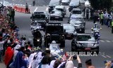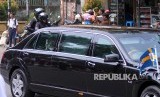 Rombongan Raja dan Ratu Swedia saat melintas di Jalan Otista, Kota Bogor, Jawa Barat, Senin (22/5). Kedatangan Raja Carl XVI Gustaf dan Ratu Silvia dari Swedia ke Istana Bogor untuk kunjungan kenegaraan bertemu dengan Presiden Indonesia Joko Widodo. (FOTO : Yulius Satria Wijaya/Antara)