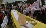 REPUBLIKA.CO.ID, JAKARTA -- Sejumlah mahasiswa melakukan aksi di depan gedung merah putih Komisi Pemberantasan Korupsi (KPK), Jakarta, Selasa (23/5). Dalam aksinya mereka menuntut agar KPK mengusut tuntas kasus BLBI.