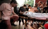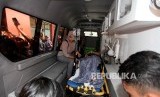 Keluarga korban mendampingi saat Petugas memindahkan korban ledakan bom Terminal Kampung Melayu saat tiba di Instalasi Gawat Darurat (IGD) untuk mendapatkan perawatan di RS Polri Kramatjati, Jakarta, Kamis (25/5). (FOTO : Republika/Rakhmawaty La'lang)
