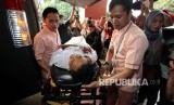 Petugas memindahkan korban ledakan bom Terminal Kampung Melayu saat tiba di Instalasi Gawat Darurat (IGD) untuk mendapatkan perawatan di RS Polri Kramatjati, Jakarta, Kamis (25/5). (FOTO : Republika/Rakhmawaty La'lang)