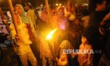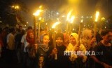 REPUBLIKA.CO.ID, JAKARTA -- Ratusan warga antusias mengikuti pawai obor sambut bulan suci Ramadhan di Kemayoran, Jakarta, Rabu (24/5).