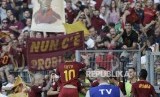 Poster dan spanduk Francesco Totti dibawa supporter AS Roma pada pertandingan terkahir Sang Pangeran Roma di Stadion Olympico Roma, Senin (29/5) dini harI. (FOTO : Stefano Rellandini/Reuters)