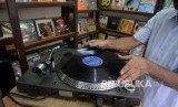 REPUBLIKA.CO.ID, JAKARTA -- Penjual memasang piringan hitam atau vinyl di salah satu toko di Jalan Surabaya, Menteng, Selasa(30/5). Hingga kini piringan hitam masih diburu pencinta musik dan kolektor dengan harga Rp 25.000 hingga Rp 400.000 tergantung seberapa langka piringan hitam tersebut.