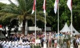 Suasana upacara peringatan Hari Lahir Pancasila di halaman Gedung Pancasila Kementerian Luar Negeri, Jakarta, Kamis (1/6). (FOTO : Republika/Prayogi)