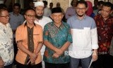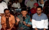 REPUBLIKA.CO.ID, JAKARTA -- Mantan Ketua Umum PAN periode 1998-2005 Amien Rais memberikan keterangan terkait aliran dana dugaan korupsi alat kesehatan di kediamannya di Gandaria, Jumat (2/6).