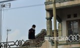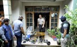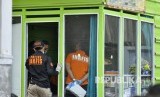 Petugas gabungan tim Detasemen Khusus (Densus) 88, Kepolisian dan tim Inafis memeriksa dan menggeledah sebuah rumah terduga teroris di Kampung Paledang, Kecamatan Cileunyi, Kabupaten Bandung, Selasa (6/6). (FOTO : Mahmud Muhyidin)