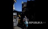 Umat muslim Bali melintasi di kawasan komunitas muslim di Denpasar, Selasa (6/6). (FOTO : Made Nagi/EPA)