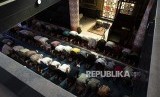 Umat muslim Bali shalat berjamaah di sebuah masjid di Denpasar, Selasa (6/6). (FOTO : Firdia Listiawati/AP)